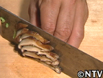 にんにく、しいたけ、生姜、ネギをみじん切りにする。 |