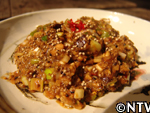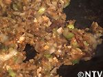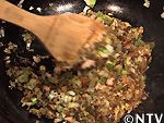 フライパンにエゴマ油をひき、ニンニク、ネギ、シイタケの順で炒める。