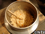 炊いた米に具材を混ぜて、おにぎりをにぎる。