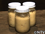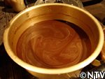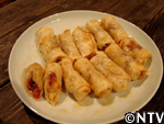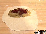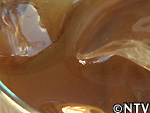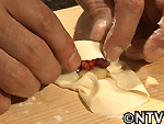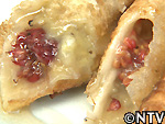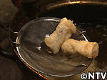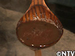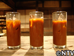餃子の皮を作り、片栗粉を付けながら薄く伸ばす。 皮にバナナジャムをのせ、クマイチゴを3つ並べる。 春巻と同様の方法で包む。 180℃の油でキツネ色になるまで揚げる。 油から取り出し、ハチミツをかけて完成。 黒大豆を焦げるまで炒る。 ※この焦げがコーヒーに近い味を出す。 石臼で粉末にする。 鍋にお湯を沸かし、2の粉末を入れる。 3が冷めたら、氷の入ったグラスに注ぐ。 戻る