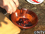 めふんに唐辛子を1/2本みじん切り、ヒタヒタになるくらいの醤油を入れる。