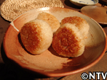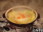 白菜を土鍋に収まるよう、4cmくらいで輪切りにする。 輪切りにした白菜を土鍋に隙間無く敷き詰め、花形に切った人参をのせる。 始めは中火で温め、湯気が出始めたら弱火にして蒸す。 白菜の芯まで火が通ったら完成。 七輪でおにぎりに焼き目がつくまでじっくりと焼く。 焼き目がついて表面が堅くなってきたら、鮭醤油を塗る。 両面同じ様に焼けたら完成。 戻る