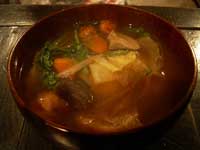 ニンジン、たまねぎ、しいたけ、ごぼう、春菊、白菜、麩、豆麩