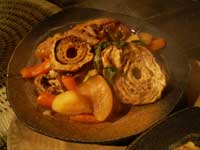 にんじん3本、ジャガイモ5個、大根1本を大きめに切り、昆布でダシをとった鍋に入れて煮る。