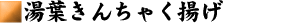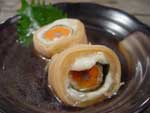 切ったじゃがいもをゆで、すりつぶして、塩少々を加える 切ったにんじん、しいたけをゆで、すりつぶしたじゃがいもに混ぜる。 煮込んだかんぴょうを粗めのみじん切りにする。 じゃがいもににんじんとしいたけを混ぜたものを湯葉で包み、もどしてあるかんぴょうでしばる。 できた湯葉きんちゃくを油で揚げてできあがり。