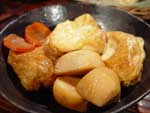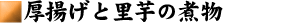 だし汁に、にんじんとしいたけを入れて、火にかける。だし汁は、しょうゆ12杯、砂糖16杯、みりん4杯、酢4杯、酒2杯、塩小さじ2杯でつくってみた。 さらしに巻いて水切りした豆腐を大き目の角に切る。 切った豆腐を油で揚げ、厚揚げをつくる。 厚揚げを斜めに切って、だし汁の中に入れ、煮込む。 鍋がある程度煮詰まったら、水に溶いた片栗粉を適量入れて、火を止め、盛り付けて完成。