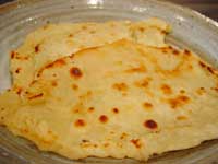のばした生地を、油をひいたフライパンで焼き、こんがりと焼きいろがついたらできあがり。 |