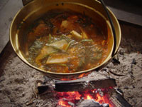 最後に鍋いっぱいほどの塩水をかけて、丸1日漬け込む。 |