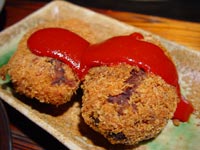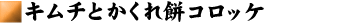 トックをゆでる。 すりつぶしたジャガイモと刻んだキムチに、おからと刻んだしいたけ、わらびを入れ、よく混ぜる。 よく混ぜたコロッケの具を俵状にする。中にゆでたトックを入れる。 俵状にしたものを、溶き卵、小麦粉、パン粉の順でつけ、油で約20分揚げる。 コチュジャン、ケチャップ、しょうゆを混ぜてつくった特製ソースをかけて、できあがり。