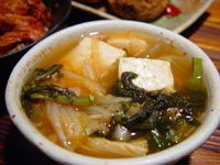 キムチ、唐辛子、豆腐、春菊、しいたけ、