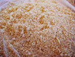 『秋の様子見』 米の刈り入れのころ、様子を見てみると、いずれの味噌も、かびもなく、味噌らしいいい色になってきた。 ただ、味見をしてみると、ちょっとしょっぱい。そこで、孝子さんの麹を追加すると甘味が増しておいしくなるとのアドバイスを受け、味を調整。麹を加え、しっかりとかき回し、仕上げの熟成に向け、さらに寝かす。 |