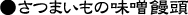 ふかしたさつまいも饅頭に味噌あんをのせ、おろしたわさびをのせできあがり。