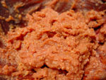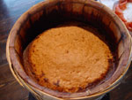 おわん一杯の米味噌に、にんにくをすったものを混ぜ込む。