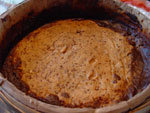 味噌を乗せた朴葉に、落花生とひまわりの種と栗の具をのせ、七輪でこんがり焼いてできあがり。朴葉味噌は、味噌そのものの味をよりおいしく味わうことができた。