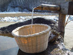 13.冷まし ゆでた麺をざるに入れ、アヒル村長の浮かぶ湧き水で冷ます。 |