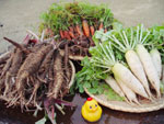| 15.かきあげづくり 温かいそばには、かきあげをのせることに。こちらも、DASH村でとれた、ごぼう、にんじん、たまねぎを、細かく、包丁ではらうようにして切り、水に溶いた小麦粉でよくかき混ぜる。そして、こぶしくらいの平らな大きさに丸めたら、油で揚げできあがり。 |