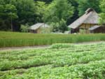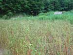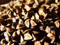 1.そばの収穫 2002年8月、高さ80センチほどになり、よく実った実を鎌で刈り取って収穫。この時点でけっこう乾燥していた。 |