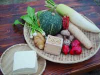 炒めた野菜を、長いもとあわせて練った豆腐に加え、よくかき混ぜる。このとき、塩と薄口しょうゆで下味をつける。 |