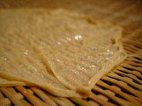 白菜で包んだものを、さらに湯葉で包む。