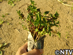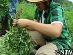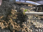 明雄さんが持ってきてくれた和種薄荷の苗を20cmの間隔で植えていく。 薄荷は種からも育つが、地下茎から切り取った根の付いた苗で植えた方が丈夫に育ち易いというこということで、今回は、苗を定植した。 |