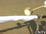 | 薄荷の蒸留はスピード勝負でもあり、鉄の管が冷えていないと、薄荷の成分が気体となって、どんどん逃げてしまう。油が、液体となるのは40度以下。全員で、急いで鉄の管を冷やす。 | ||