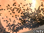 | アスパラガスの種子は種皮が厚く硬いので、1〜2日ぬるま湯に浸し、しっかりと吸水させてから種を蒔く。直径2mmの小さな種をポットに撒いた。 |