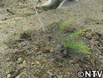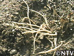 | 貯蔵根を狙ったのか、イノシシによって根っこが掘り返されていた。 畑に侵入防止のネットを張り、畑の入り口に鳴子を設置した。 |