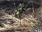 | 定植後まもなく、畑一帯に遅霜が降りる日があったが、斜面にある茶畑には霜が降りる事はなかった。順調に生長したチャノキは背丈こそ3cmほどの伸びだが、葉の枚数は着実に増えていた。 |