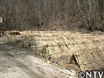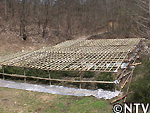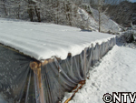 | そして、いよいよ一番の勝負どころである冬を迎えた。チャノキにとって冬は休眠期。この村の厳しい寒さを越えられるかが、今後のチャノキに大きく影響する。 一年目の冬越えの対策に用意したのは敷きワラと茅。 合掌状態で畝全体を覆う。これで雪よけはもちろん、保温の効果も得られるはず。色々な事が初めてのお茶栽培。これでチャノキは無事冬を越してくれるだろうか? |