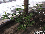 | 二度目の冬は、前年とは打って変わっての厳しい寒さ。-12℃を下回る日も多く。 露地ならば危険な状況だったが、ビニールハウス内のチャノキは、どの株も青々として寒害を受けている様子は無く、なんとか栽培3年目を迎える事が出来た。ここからはチャノキの地力を信じて、いよいよ枝葉を増やす段階へ。 |