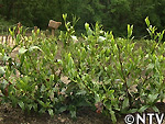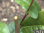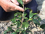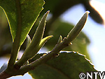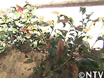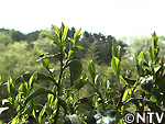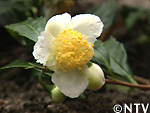 | 剪定されたチャノキたちの新芽の伸びは予想を超えたものだった。剪定後、一ヶ月で葉の数は見違える程に。さらに、10月にはますます生長し、ツバキのような花が咲いた。チャノキは秋に花を咲かせる。 奇麗ではあったが、やはり目指すは茶摘み。心苦しいが、ここは葉に養分が行くように花を摘み取る。 |