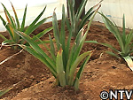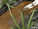 | 2008年 6月上旬 栄養不足/鴨糞対策 新芽がしっかりと伸びてきた中、葉の色の異変に気付いた。 本来、緑である葉が赤くなってきてしまった。 エムティによると、葉が赤くなってしまったのは、伸び盛りのパイナップルに栄養が足らないというシグナルであり、肥料を与えたほうが良いとのことで、葉を大きく育てる窒素とリン酸が豊かな肥料として、鴨の糞を採取し乾燥させ、パイナップルの畝の間にまいた。 |