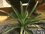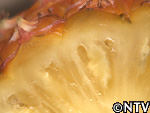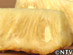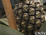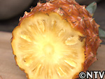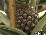 | 2009年 8月 色づき確認/収穫 深緑色だった実は、鮮やかな黄色に色づき、待望の収穫を迎えることとなった。 色だけに限らず、ハウス内はパイナップルの甘い香りが広がり、待望の収穫。 糖度も16度と(一般的なパイナップルは13〜17度)、上々の出来映え。 完熟のパイナップルを食べたのは初めてで、今まで食べてきたパイナップルの中でも一番甘くておいしかった。 |