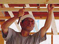 [大工] 昭和26年6月20日生まれ 大工歴37年 池田棟梁の技と精神を受け継ぐ大工さん。 技術の細かさと、作業の速さには定評があり、ノコギリの引きの速さは 天下一品。 現在は伝統的な日本建築のみならず、洋風建築や集合住宅など、 幅広く手がけている。 |