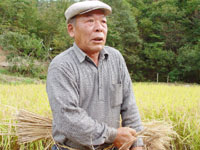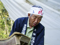 10代の頃から山で働き、炭窯を作って炭を焼いていた炭焼き名人。 立ち上る煙の色で釜の温度を判断し、炭を作り上げる。 炭作りだけではなく、山の達人でもある金光さんは、樹木や野鳥などの 膨大な知識を蓄えている。 また、田植えや役場の建て直しなど困ったときにはいつでも 力をかしてくれるやさしい人物でもある。 |