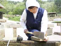 [大工] 昭和50年10月5日生まれ 大工歴8年 日本伝統家屋移築の際に指揮してくださった島崎棟梁が 講師をしている、富山国際職藝学院の建築職藝科の第一期生。 彼女の父親は大工を始めて40年という大ベテラン。 その父の影響で大工の道を選ぶ。 学院を卒業後、数多くの建築現場にたずさわり、その中には世界遺産の補修という大仕事もはいっている。 細い体のどこにそんな力が・・・と思うほどの力持ちで、30kgくらいなら 片手でひょいと持ち歩く。 その一方、女性ならではという繊細で丁寧な仕事ぶりは 島崎棟梁のお墨付き。ちなみに座右の銘は『七転び八起き』である。 |