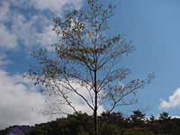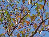 それは、畑の脇に立っている「ミズキ」。この木は周りに木がなく、一本だけでそびえ立っているため、日の長さや気温の変化を感じやすく、色づきはじめるのがはやいようです。