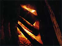 まず、炭窯が完成。暖かい炭をつくるために、いよいよ火を入れました。