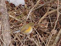 ついに大接近。冬の里山に降りてきたこの鳥、とても美しい野鳥ですが、いったい何という鳥なんでしょうか。