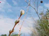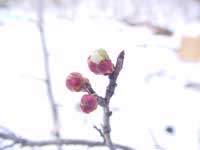 小川に咲いたふきのとう、そよ風に揺れる猫柳に続き、今週は、梅のつぼみがほころび始めました。梅の木は家の裏にあります。