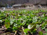 厚く積もっていた雪が融けて、青々とした草の原っぱが現れました。