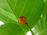 さて、DASH村の雑木林は濃い緑に包まれていますが、その中で、緑に映えるルビーのような真っ赤な実を見つけました。