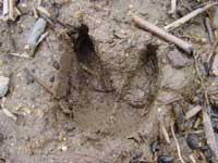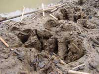 イノシシの足跡は、水田とアイガモ達の池の間の畦に、爪の形もくっきりと残っていました。