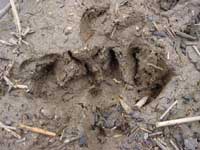 朝一番に村内を見回っているとき、イノシシのものと思われる足跡を見つけました。