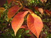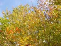 ミズキのように一本で立っているものは、すっかり赤に染まり、山にある木々も空に近いあたりや、道に面したあたりは赤や黄色のパステルカラーに変わっています。