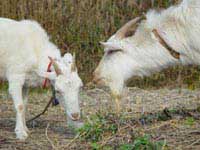 古民家の裏山に駆け登って草を食べたり、八木橋の顔をのぞいたりしています。