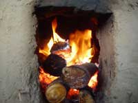 これまで、料理のときには、その都度、石を積んで枯れ木を集めて火をおこしていたのが、かまどがあるので、もう、火をおこして鍋を掛けるだけ。そして、火力も強いので、思いのほか、はやくできます。
