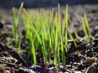 種蒔き直後に厚い雪の下に埋もれてしまったときは、果たして芽が出るのか、と心配になりました。しかし、大雪にも寒さにも負けず、春、雪が融けたらしっかりと青い芽を出してくれていました。小麦は強いものです。