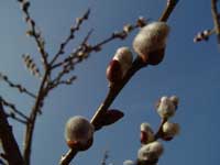 麦畑脇の小川沿いにある猫柳らしき木が、花を咲かせた。この花は、白くて触ると柔らかく、綿のよう。枝いっぱいに咲いていて、まだつぼみのものが半分くらいある。水田の脇にも同じような木があったが、こちらは、花はまだ。DASH村は春の香り。(3月1日16時)