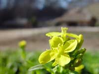 このかぶは、長い冬の間ビニールハウスで育てていたもので、小さすぎて収穫するのをためらってそのままにしておいたものなのですが、知らぬ間に春を迎えて息を吹き返し、鮮やかな花を咲かせました。命の強さを思いました。